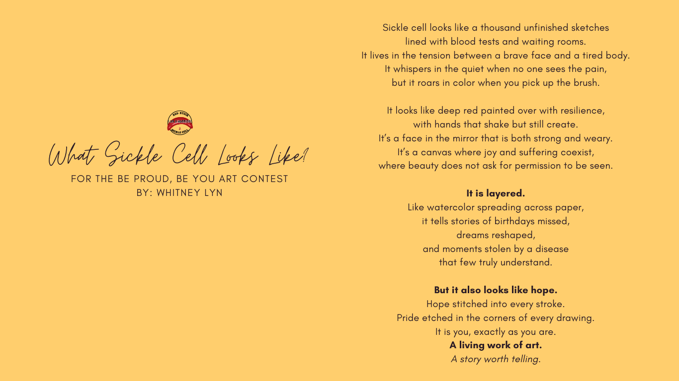 At 14 years post–bone marrow transplant and on a powerful journey as a self-taught artist, Mikiel Davis , instagram tag name Merkury.Seven is the embodiment of resilience and creativity. His winning piece, Love’s Power, is more than art—it’s a personal testament to everything it means to live, survive, and grow as a sickle cell warrior.